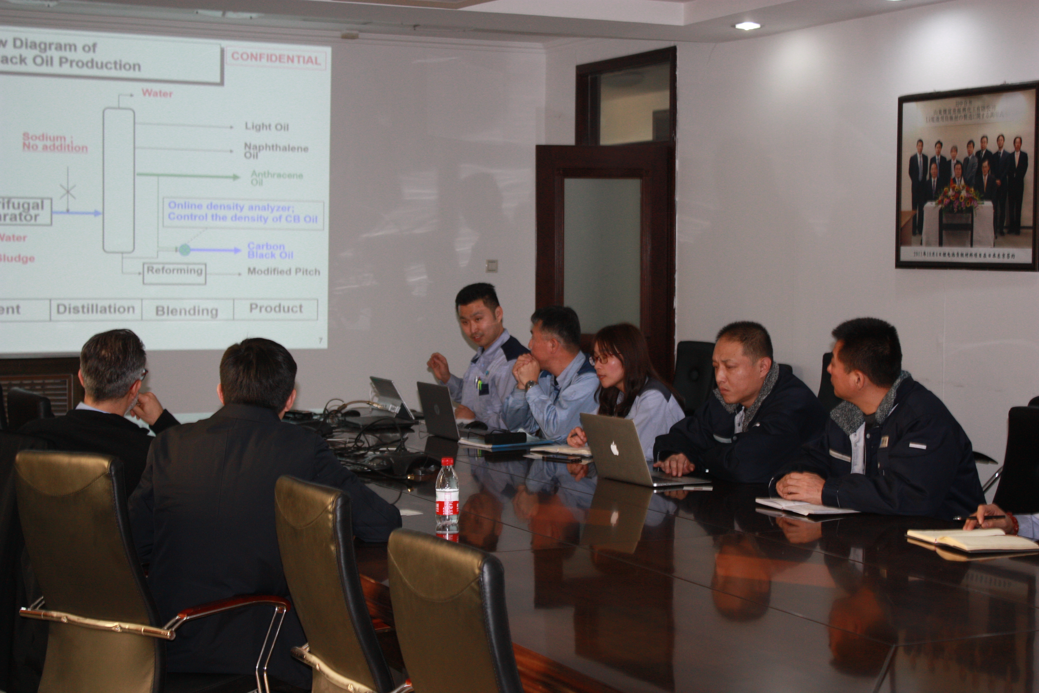 Cottrell Todd一行首先在會議室進行座談,詳細了解杰富意公司基本情況,主導產品組成架構,焦油、炭黑油、蒽油等炭黑原料油的成分比例、數(shù)量等情況及后期炭黑的市場預測、炭黑原材料市場趨勢等。并依據(jù)山東杰富意公司和棗莊杰富意公司實際制定了較為詳細的國內炭黑油和蒽油的銷售方案,對蒽油出口印度博拉工廠的設想達成了共識。隨后,Cottrell Todd一行到現(xiàn)場進行了實地參觀,對炭黑油、蒽油的質量把控、庫存量、裝車設施、計量設施進行詳細了解,對企業(yè)的發(fā)展給予認可。博拉炭黑方表示,作為老客戶將在2020年建立更加穩(wěn)固的戰(zhàn)略合作關系。