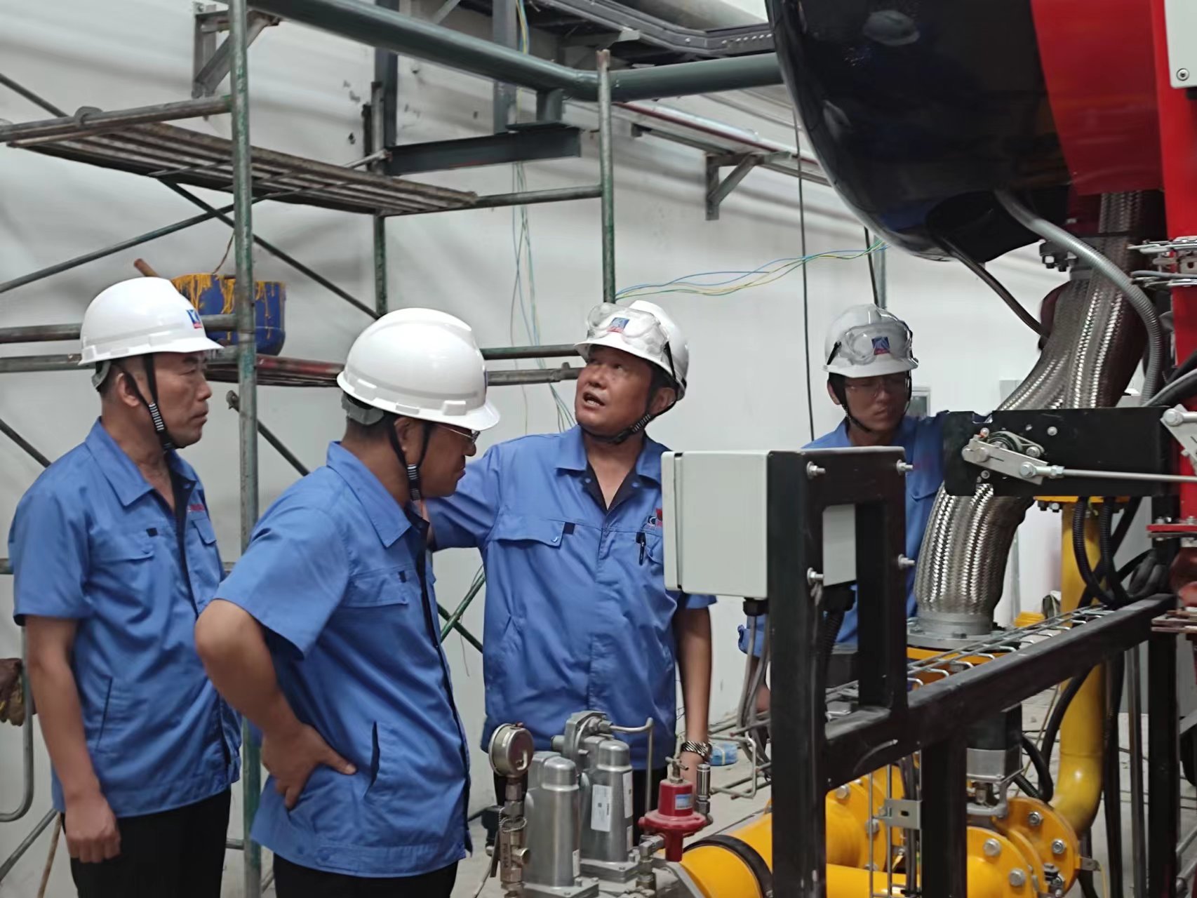 在鍋爐項目建設現場,王讀升詳細了解項目建設整體進展情況,并對天 然氣裝置、鍋爐廠房等進行實地查看。王讀升對項目建設工作提出要求:工程已進入沖刺和收官階段,要進一步強化責任意識,保證工程質量和施工安 全,嚴控時間節(jié)點,確保項目如期完成;對建設過程中可能出現的問題要有預見性和前瞻性,統(tǒng)籌謀劃,提前部署;對下一步烘爐、煮爐等重要工作, 要優(yōu)化方案,科學合理安排,抓好關鍵點,特別是鍋爐投運后的操作規(guī)程等事項,要嚴格規(guī)范管理,及時做好教育培訓及工藝流程技術交底工作。