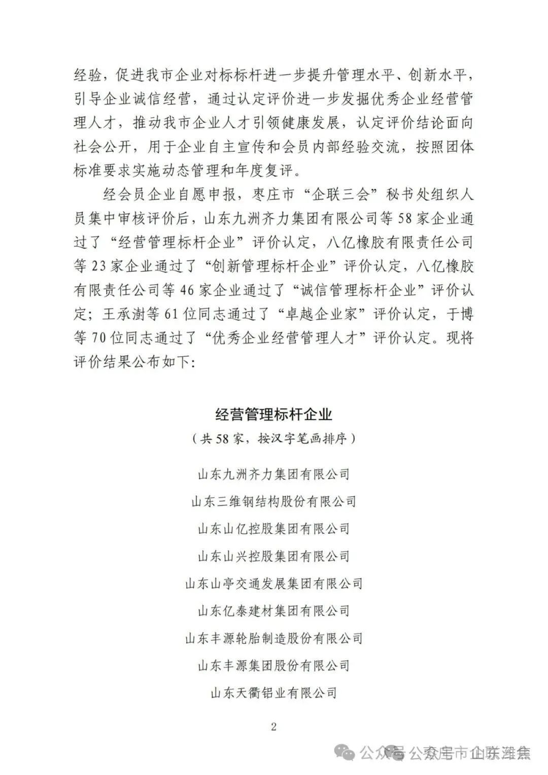 近日,棗莊市企業(yè)聯(lián)合會(huì)、棗莊市企業(yè)家協(xié)會(huì)、棗莊市工業(yè)聯(lián)合會(huì)發(fā)布《關(guān)于2024年管理標(biāo)桿企業(yè)及其優(yōu) 秀管理者認(rèn)定評(píng)價(jià)結(jié)果的通知》,山東濰焦集團(tuán)薛城能源有限公司、棗莊杰富意振興化工有限公司榮獲2024年度“經(jīng)營管理標(biāo)桿企業(yè)”稱號(hào)。這是對(duì)兩公司經(jīng)營管理水平、管理創(chuàng)新能力等方面的充分肯定和認(rèn)可。